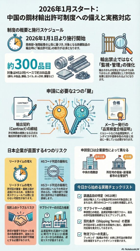 中国から鋼材・鋼材加工品を調達する企業、または第三国向けに中国製鋼材を扱う商社・物流企業は、次の影響を見込むべきです。