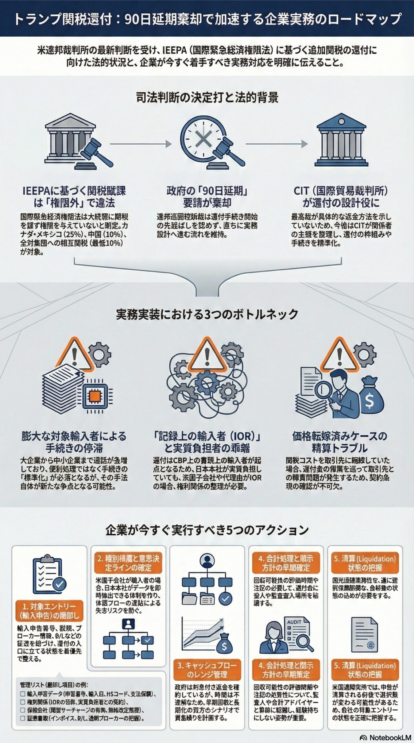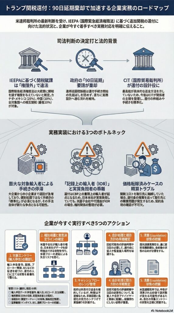 - トランプ政権は利息付き返金を繰り返し確約しているが、返金の具体的方法・時期は今後のCITでの整理次第。