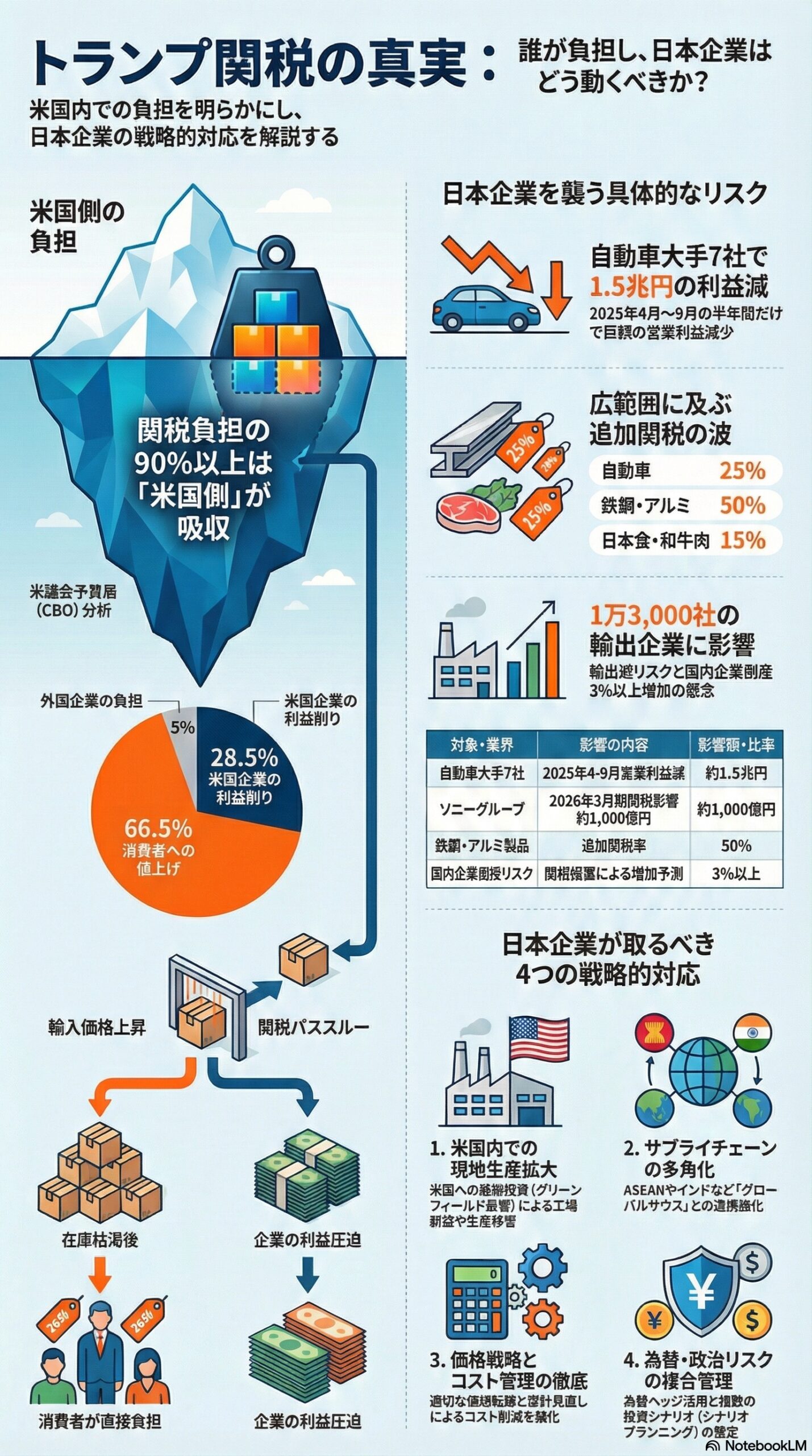 本記事は2026年2月13日時点で公開されている情報に基づいて作成されています。関税政策、経済情勢、企業業績などは今後変化する可能性があり、本記事の内容が将来にわたって正確であることを保証するものではありません。また、本記事は一般的な情報提供を目的としており、特定の企業や個人に対する投資助言、税務相談、法律相談を意図したものではありません。具体的な経営判断や投資判断を行う際には、必ず専門家にご相談ください。本記事の情報を利用したことにより生じたいかなる損害についても、筆者および関係者は一切の責任を負いかねます。