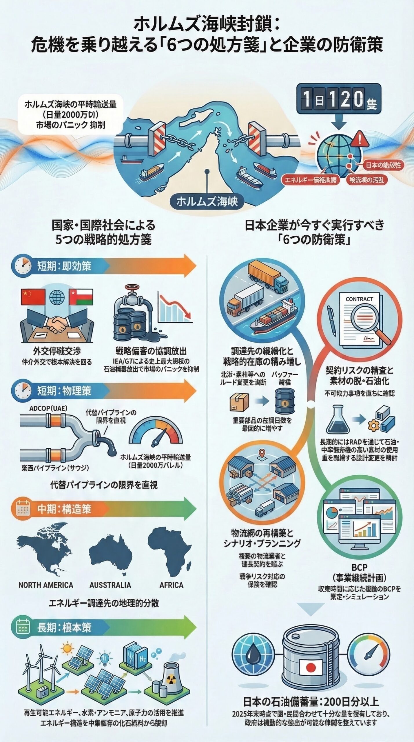 処方箋は確かに存在します。しかし、特効薬は一つもありません。外交努力、備蓄の放出、代替ルートの確保、そして企業の自助努力を、時間軸を意識しながら総動員することが求められています。