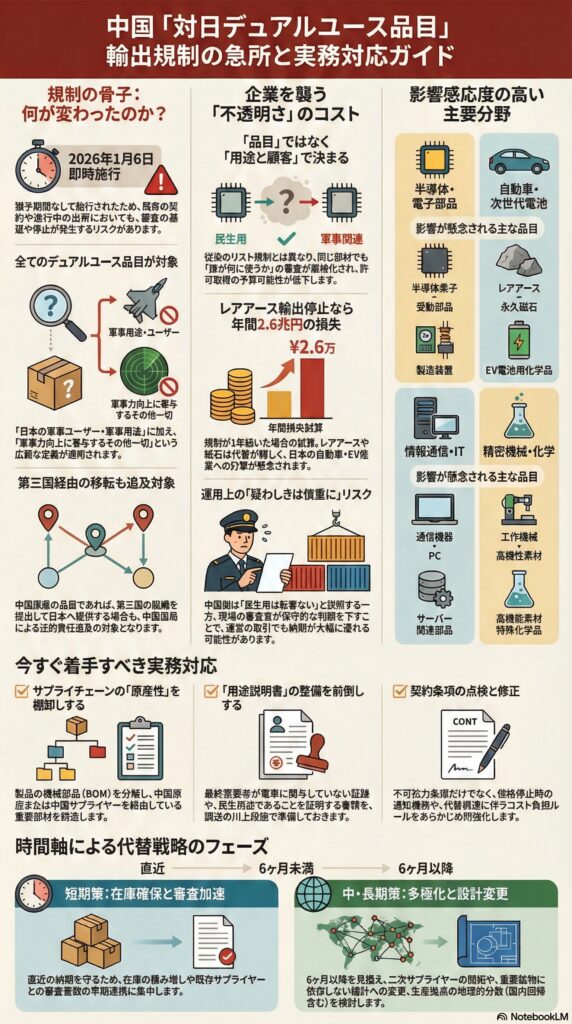 定義が曖昧なまま、サプライヤーや審査当局が保守的判断を重ねると、民生用途のはずの取引でも許可が下りにくくなり得ます。ジェトロが指摘する「規制対象が不明瞭」という点が、まさにこのリスクです。[jetro.go]